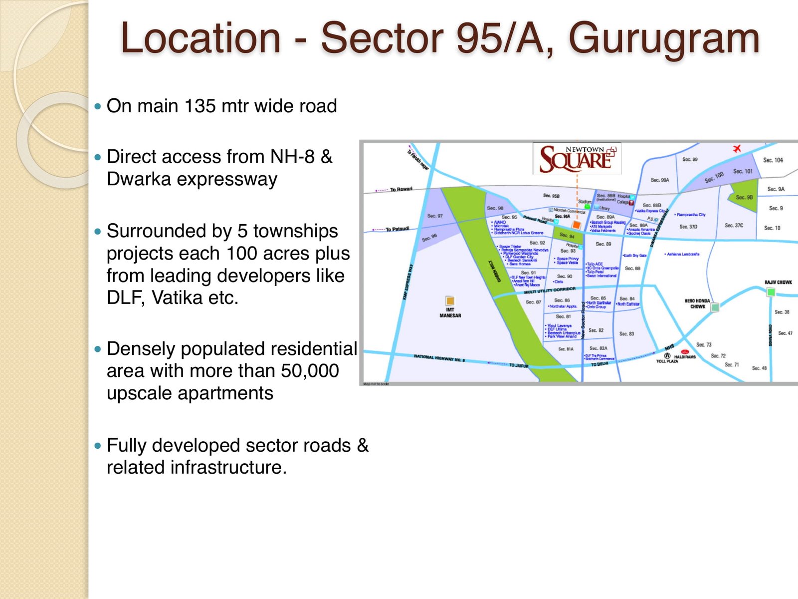 | Plot Details | 3.075 Acres located in Sector 95A, Gurgaon |